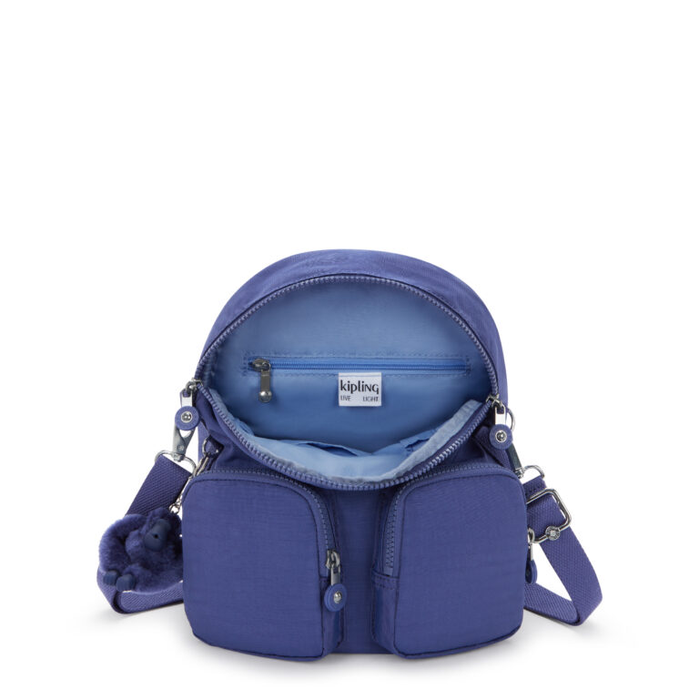Firefly up is an adaptable backpack that can also be used as a shoulder bag by simply altering the straps. The zipped rear pocket and 2 front pockets are great for easy access to essential items throughout the day. The main compartment has a magnetic stud closure with a zip beneath. Inside you’ll find a zipped pocket, pen holder, key hanger and 2 useful pouch pockets. This is a great medium size backpack with a fun monkey keyring to brighten up your day! Water repellent