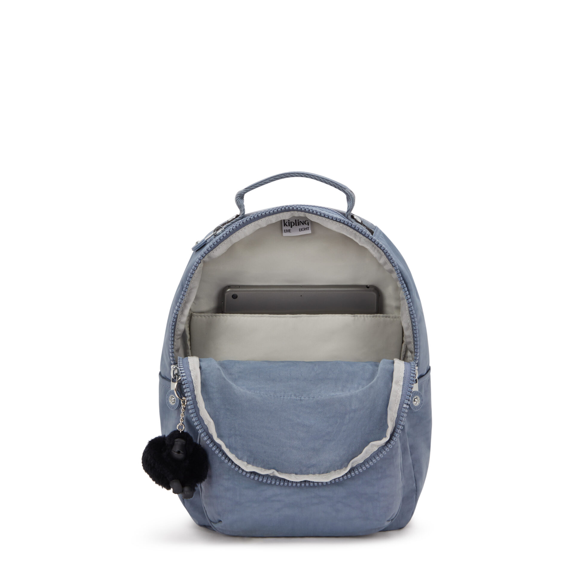 Don’t be fooled by the small size of the Seoul S backpack. The Kipling icon comes in compact form to keep your tablet safe and secure. Alongside that are the additional functional compartments, 3 front pockets and 2 elasticated open side pockets. Storage certainly won’t be a problem with the Seoul S.1 main compartment (zipped)